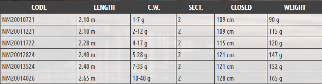 Gemaakt van 30-T carbon is dit hengeltje het lichtste van de reeks. Met zijn 2m10 en de krachtige blank kan men met deze superlichte hengel verre worpen maken met spoons en wat zwaardere softbaits (+2g). Semi parabolische actie.