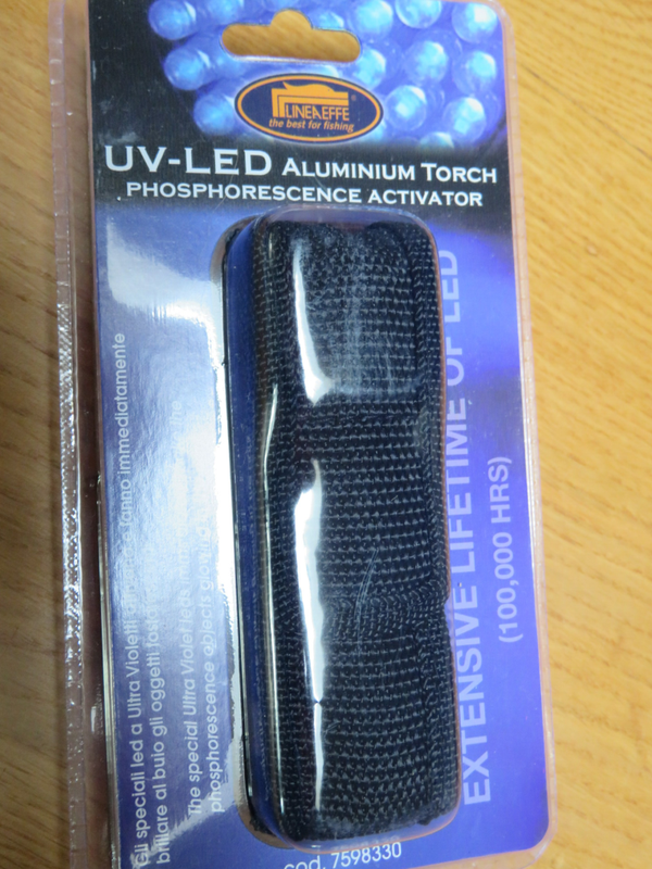 Handig UV-lampje met 12 ledlampjes op 3 aaa batterijtjes.Met stevig velcrozakje kan je hem zelfs aan je riem hangen,om al je UV aasjes even te activeren in enkele seconden licht je UV-tungsten,spoon of softbait volledig op.Ook om UV-lijm in enkele seconden uit te harden!Zonder batterijtjes.